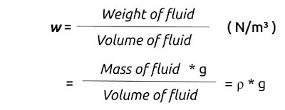 - The specific weight of fluid can be defined as the ratio of the weight of the fluid to the volume of fluid.