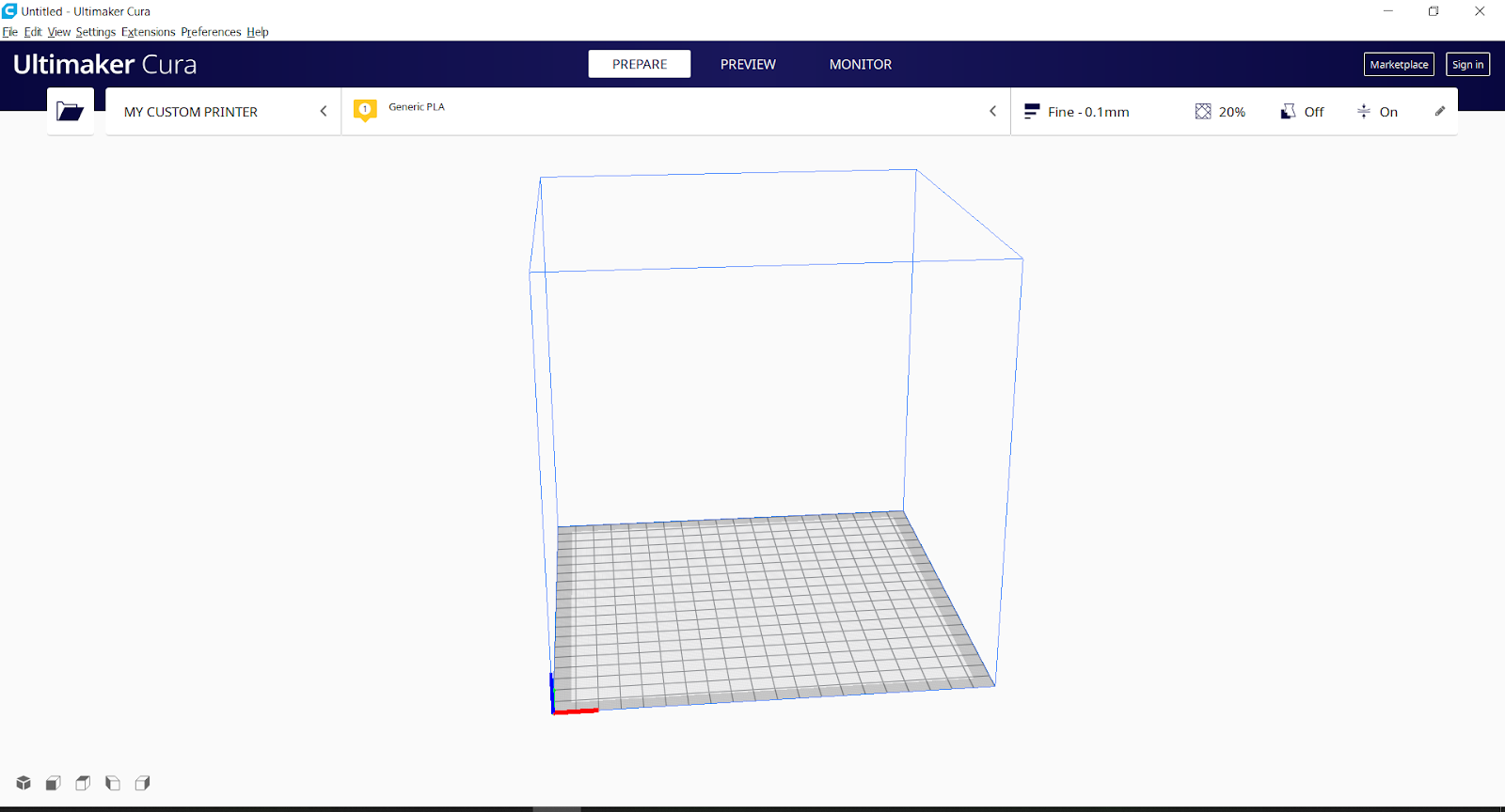 - Now your setup is completed and Cura shows a printer interface of your printer.